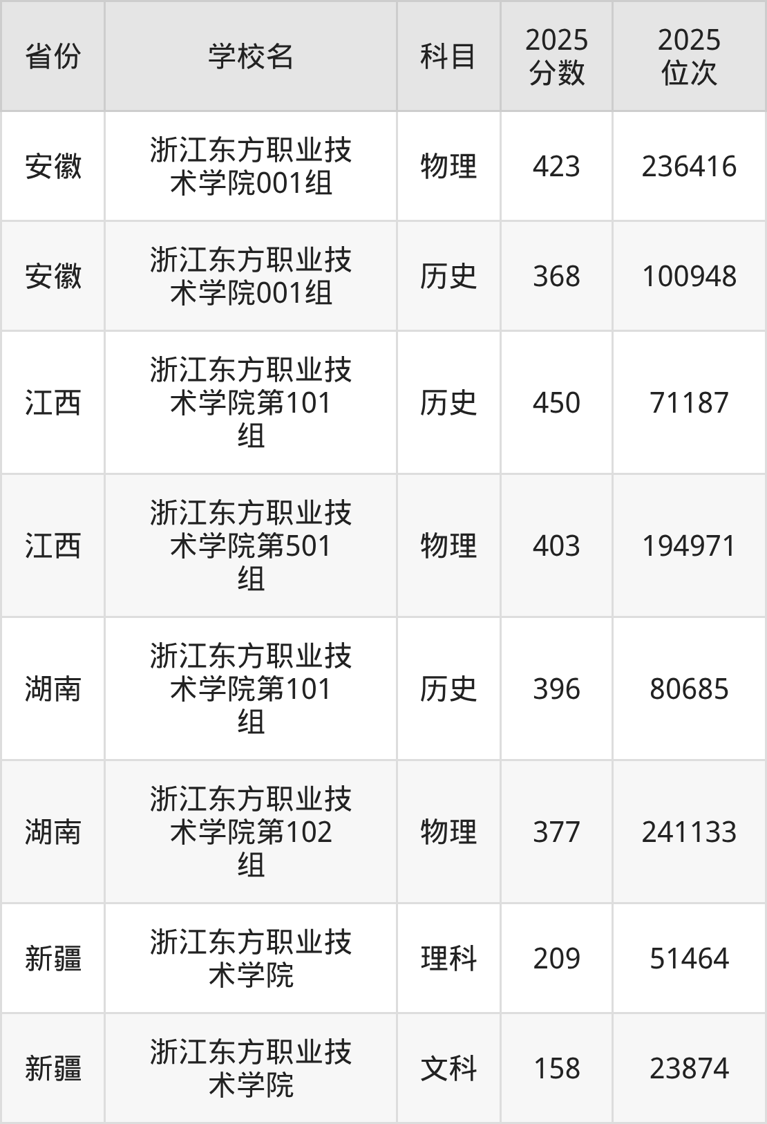 2025年浙江東方職業(yè)技術(shù)學(xué)院在省內(nèi),最低分是402分、對應(yīng)位次是253200名。