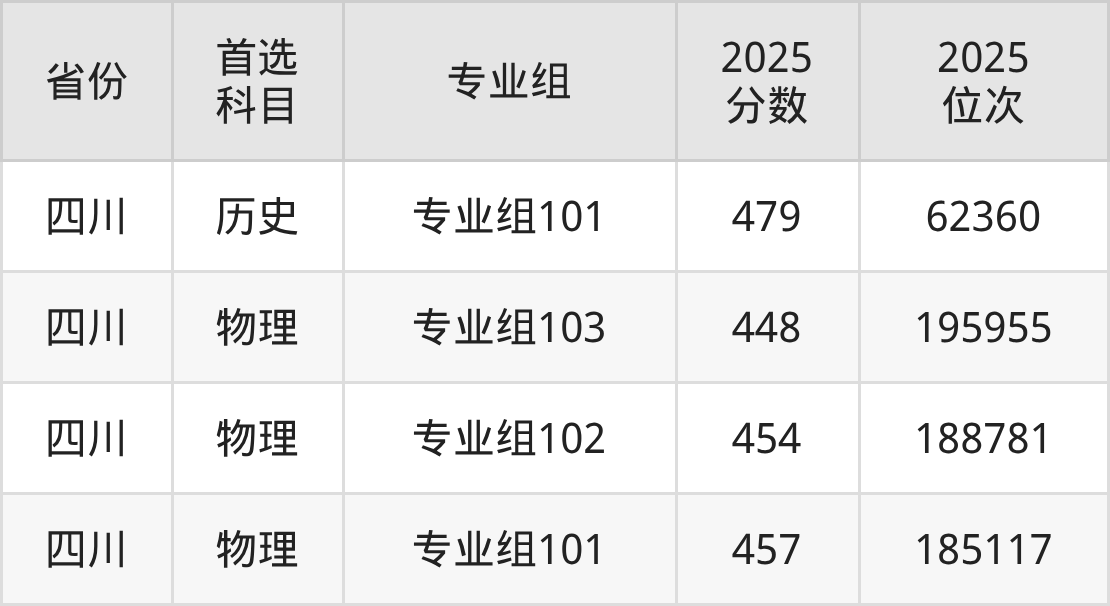 歷史類最低分對應(yīng)地區(qū)為四川(專業(yè)組101),錄取位次為62360,超??凭€329分。