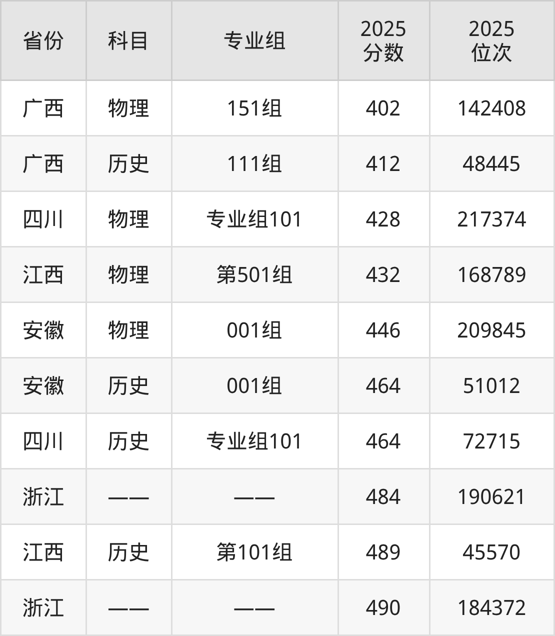 物理類:2025年溫州職業(yè)技術(shù)學(xué)院錄取最低分是402分(廣西),對應(yīng)的位次排名是142408名。