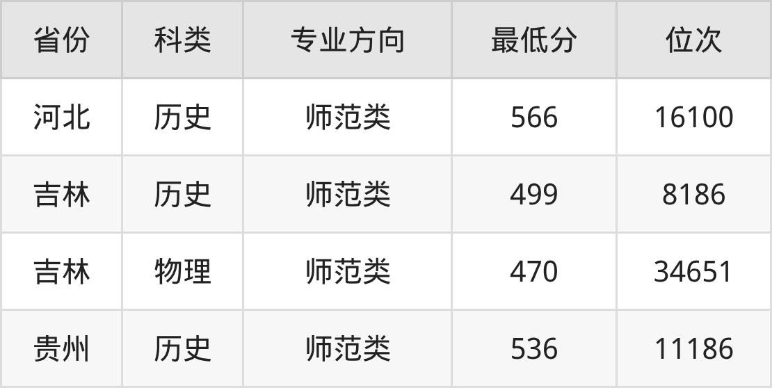 2025年長春師范大學(xué)小學(xué)教育專業(yè)在吉林錄取最低分:歷史組是499分,對應(yīng)位次排名是8186名;物理組是470分,對應(yīng)位次排名是34651名。