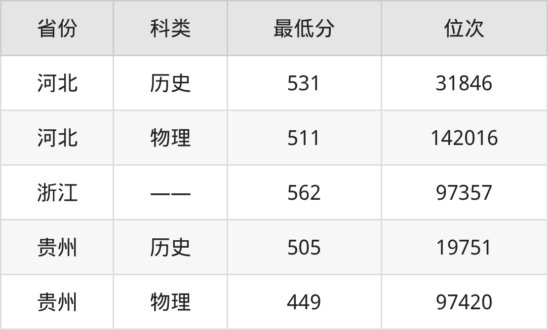 2025年廊坊師范學院社會工作專業(yè)在貴州錄取最低分:歷史組是505分,對應位次排名是19751名;物理組是449分,對應位次排名是97420名。