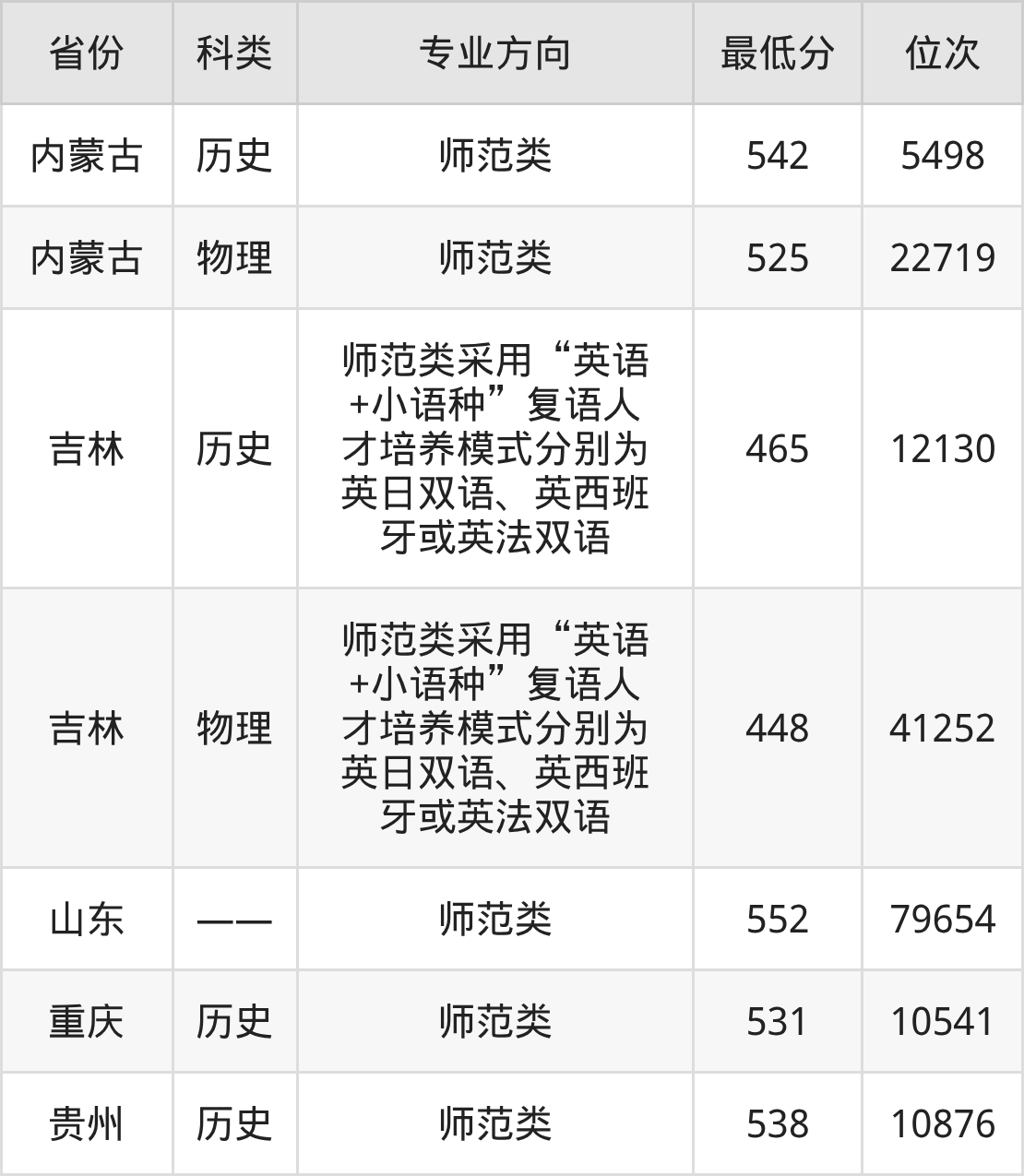 2025年長春師范大學(xué)英語專業(yè)在全國5個省市招生,錄取最低分從448分到552分不等,下面老師為大家具體介紹。
