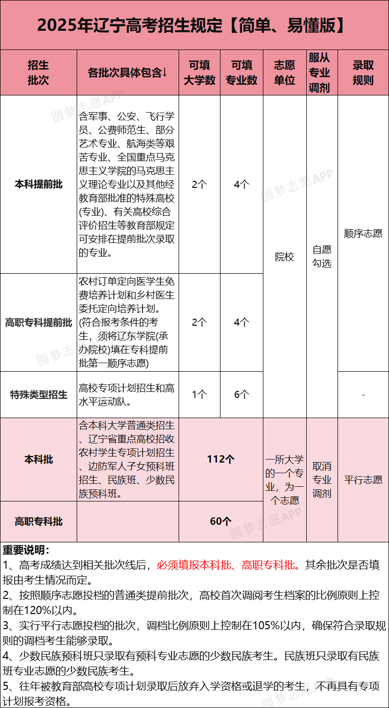 最多填報112個專業(yè)+學校志愿,包括本科大學普通類招生、遼寧省重點高校招收農(nóng)村學生專項計劃招生、邊防軍人子女預科班招生等院校