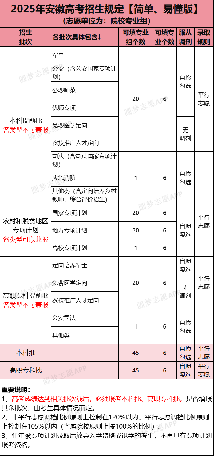國家專項(xiàng)計(jì)劃/地方專項(xiàng)計(jì)劃,可填報(bào)20個志愿。