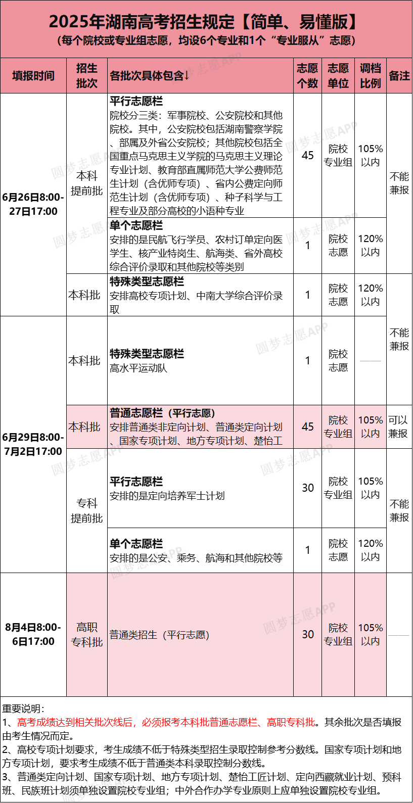 平行志愿欄:涵蓋軍事院校、公安院校(如湖南警察學(xué)院)、公費(fèi)師范生等院校,可填報(bào)45個(gè)院校專業(yè)組志愿。