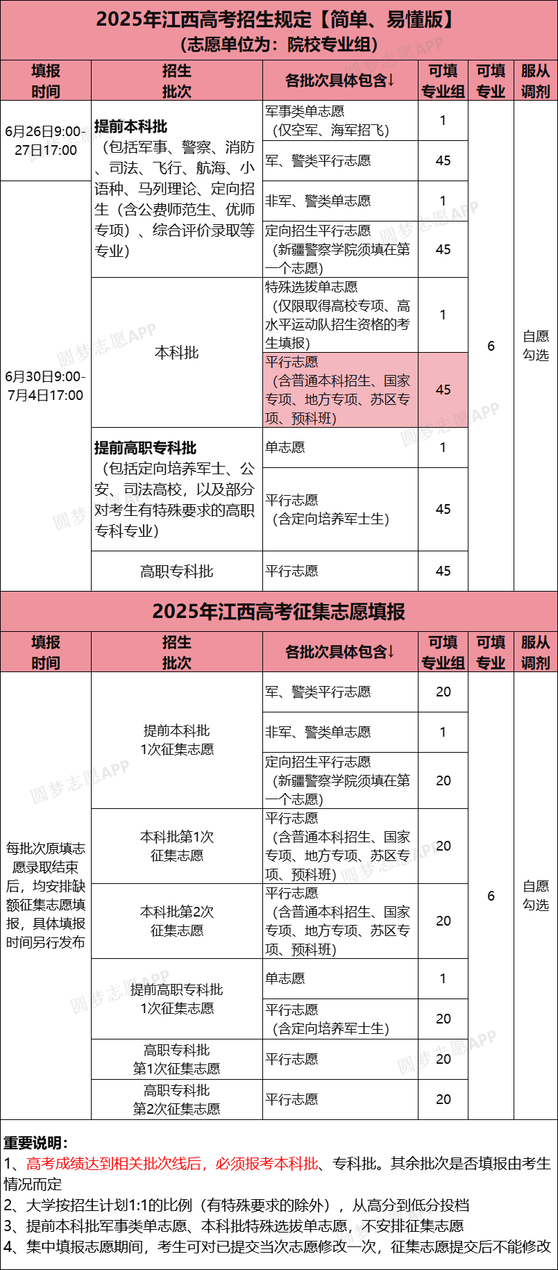 定向招生平行志愿:可填報(bào)45個(gè)志愿。