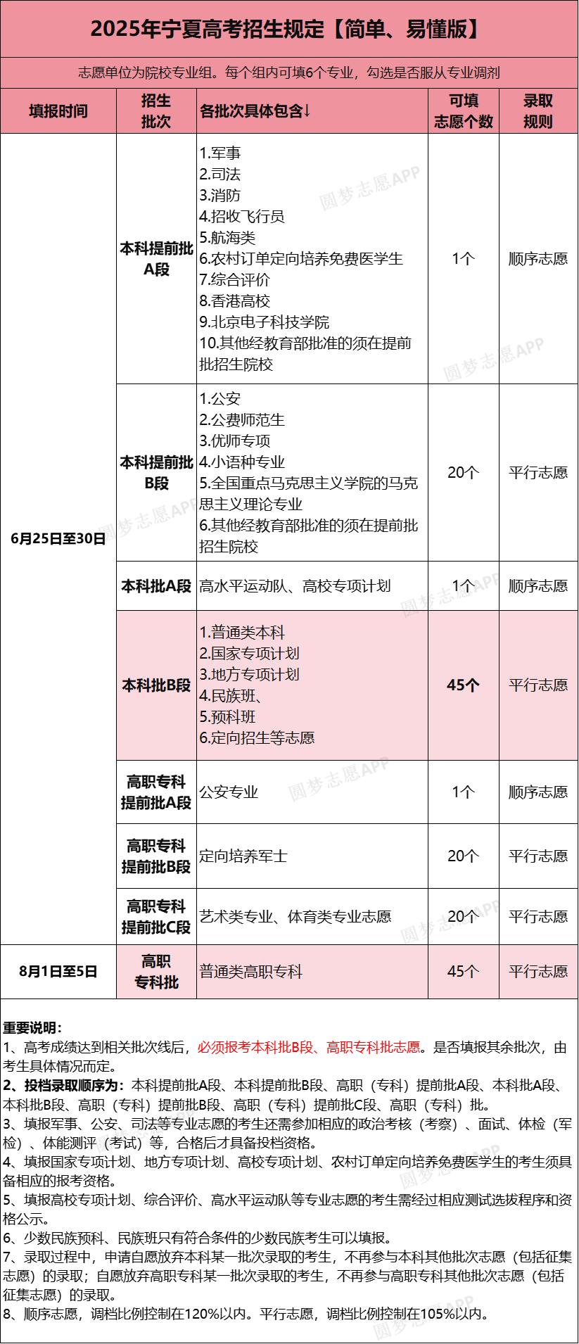 B段:包括普通本科、國家專項計劃、民族班、預科班、定向招生等院校,可填報45個志愿。