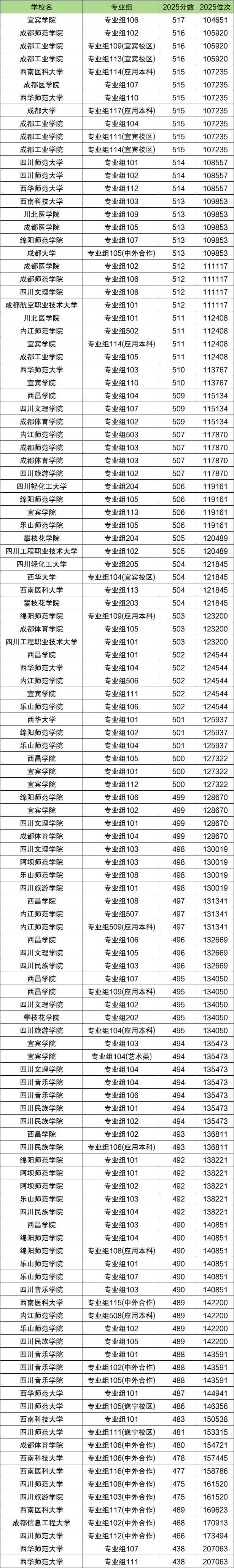 物理類分數(shù)線最高的公辦二本大學(xué)為宜賓學(xué)院106組,2025年最低分517分;分數(shù)線排名較高的還有成都師范學(xué)院102組(516分)、成都工業(yè)學(xué)院109組(516分)、西南醫(yī)科大學(xué)114組(515分)等。