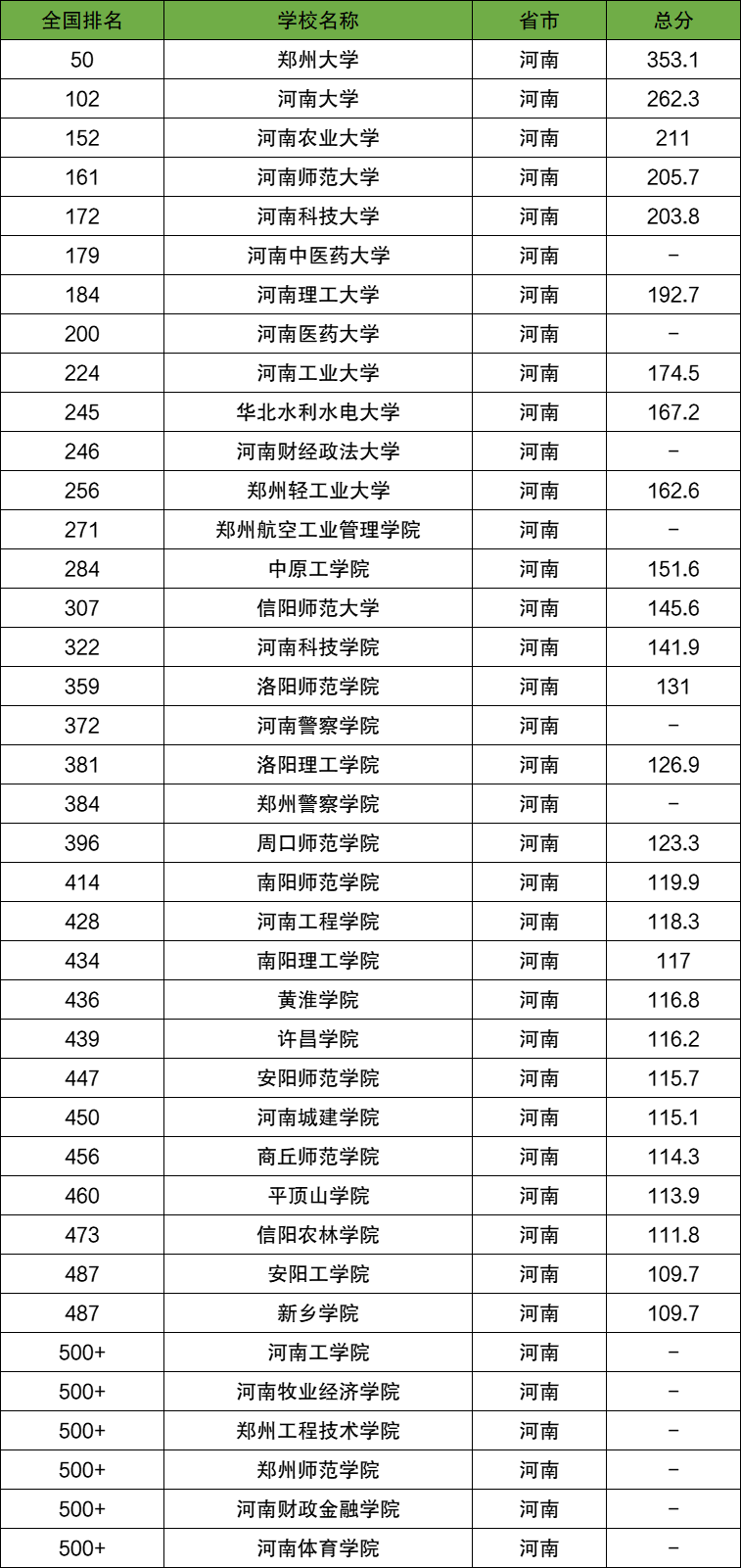 根據(jù)軟科2025年河南省大學(xué)排名情況,河南省大學(xué)排名前十的分別是: