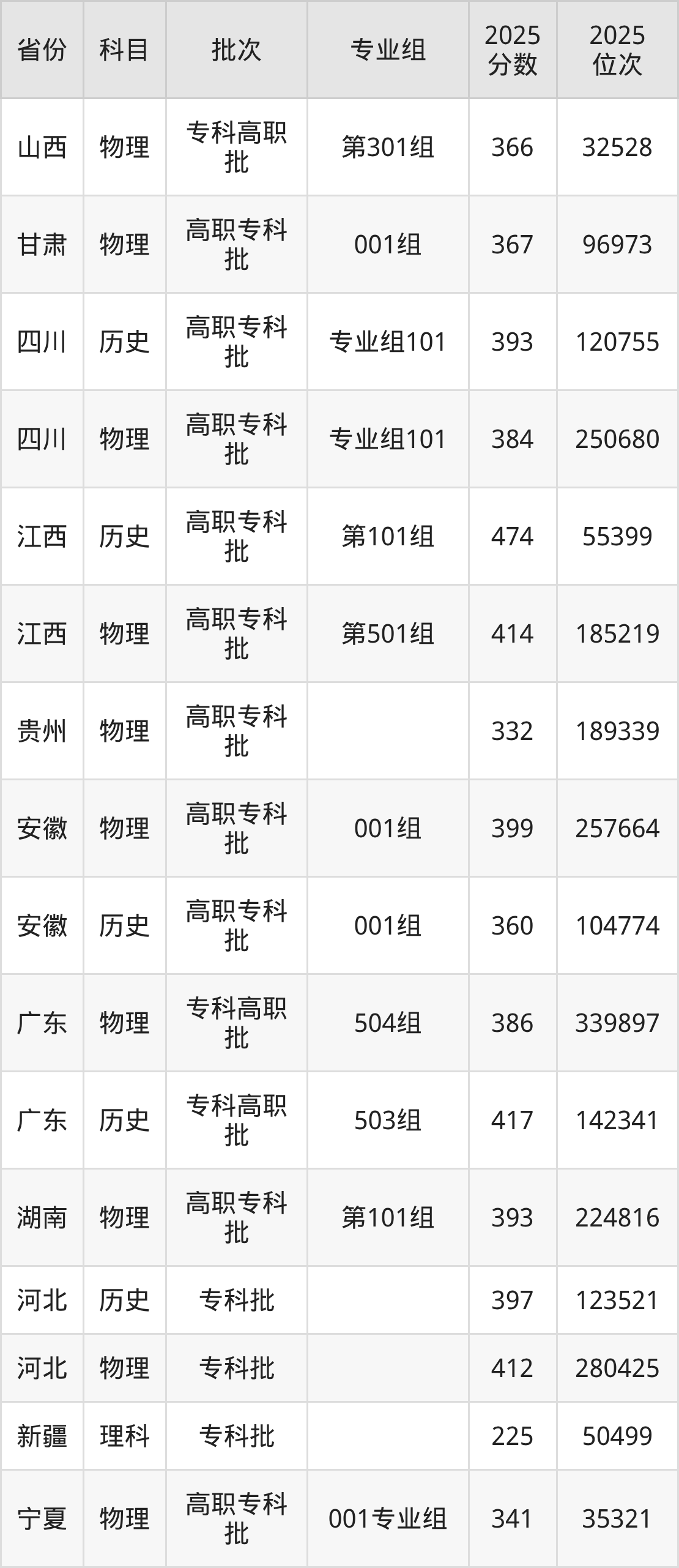 2025年在專科物理類進(jìn)行招生,各專業(yè)組分?jǐn)?shù)線詳情如下: