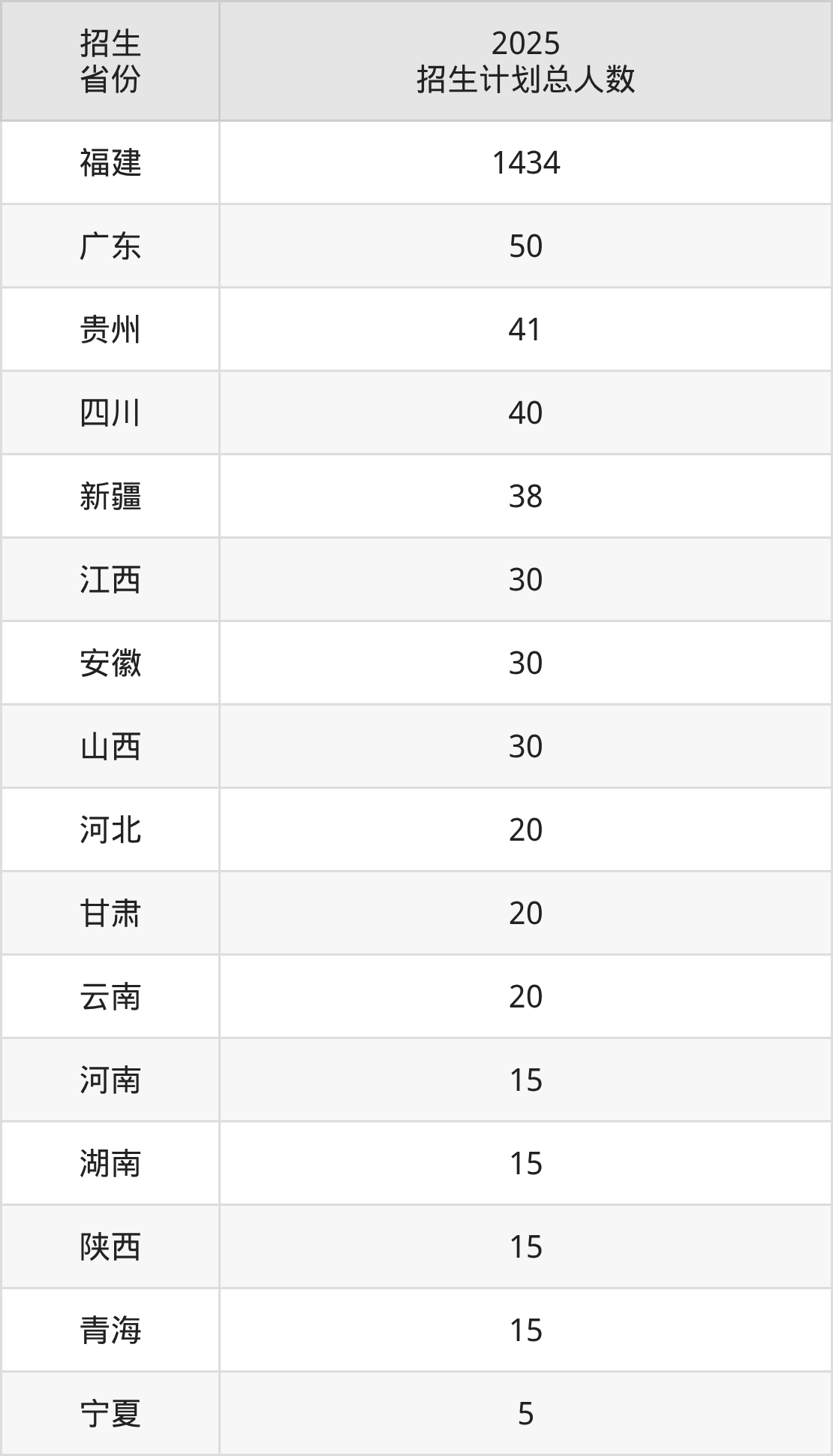 2025年福建水利電力職業(yè)技術(shù)學(xué)院面向全國16個(gè)省市開展??普猩?;招生專業(yè)共40個(gè),招生人數(shù)共1818人。2025年在福建省招生計(jì)劃總?cè)藬?shù)是1434人,其中,福建水利電力職業(yè)技術(shù)學(xué)院在福建省招生人數(shù)最多的是建筑工程技術(shù)。福建水利電力職業(yè)技術(shù)學(xué)院在各省具體招生人數(shù)情況如下表。